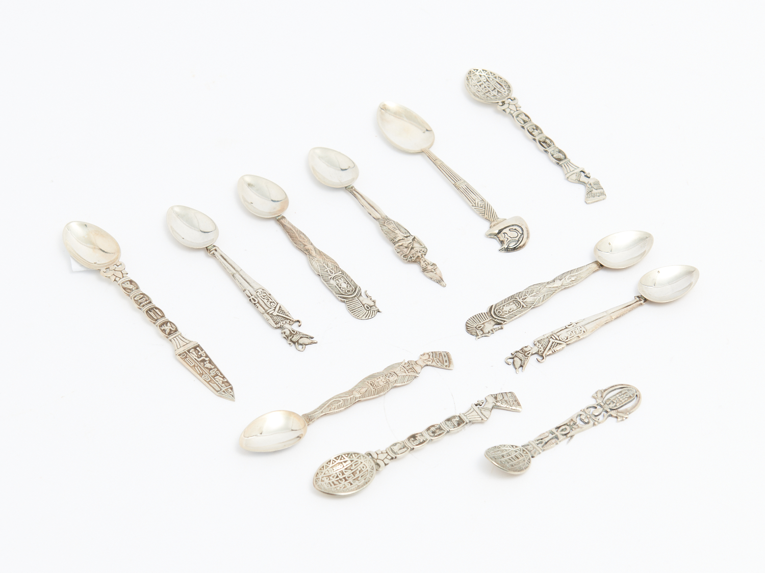ELEVEN EGYPTIAN SILVER COFFEE SPOONS L.13CM, LEONARD JOEL DELIVERY SIZE: SMALL