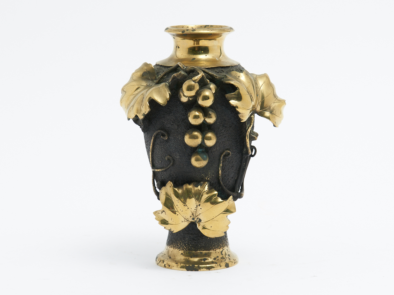 A CAST BRASS VASE ADORNED WITH A GRAPE VINE H.18.5CM, LEONARD JOEL DELIVERY SIZE: SMALL