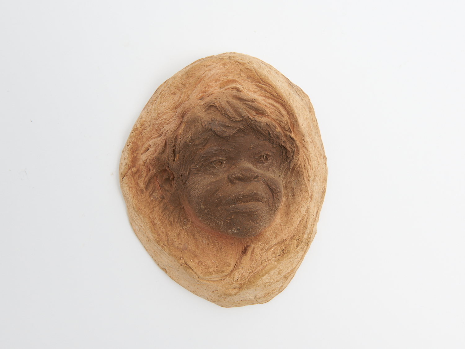 A WILLIAM RICKETTS POTTERY PLAQUE OF AN ABORIGINAL CHILD H.14.5CM, LEONARD JOEL DELIVERY SIZE: SMALL