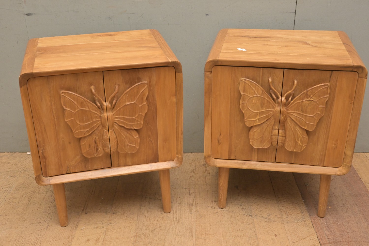 A PAIR OF TEAK BUTTERFLY BEDSIDE TABLES (61H X 50W X 40D CM) (LEONARD JOEL DELIVERY SIZE: LARGE)