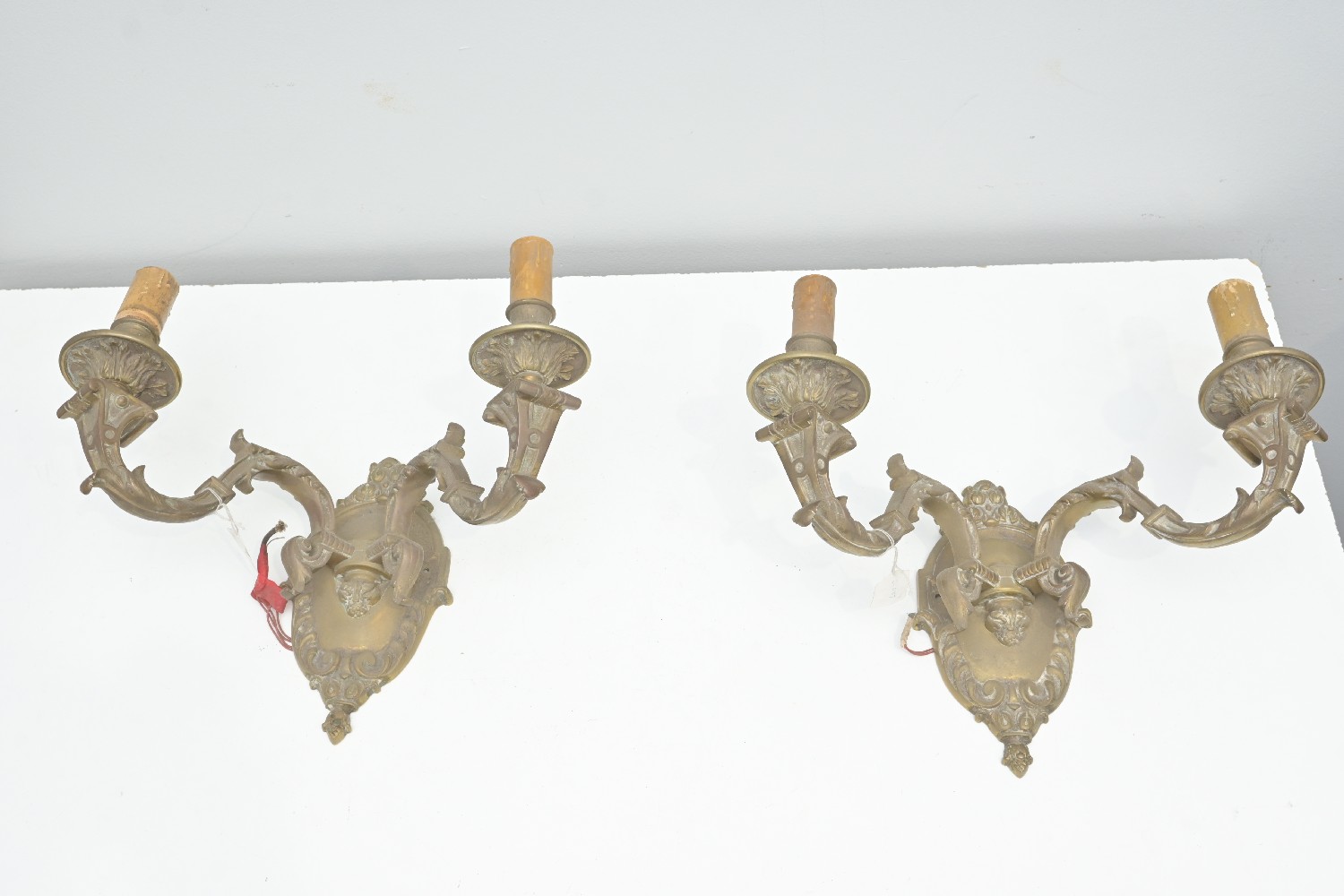 A PAIR OF TWO ARM WALL LIGHTS (A/F) (33H X 44W X 24D CM) (LEONARD JOEL DELIVERY SIZE: MEDIUM)