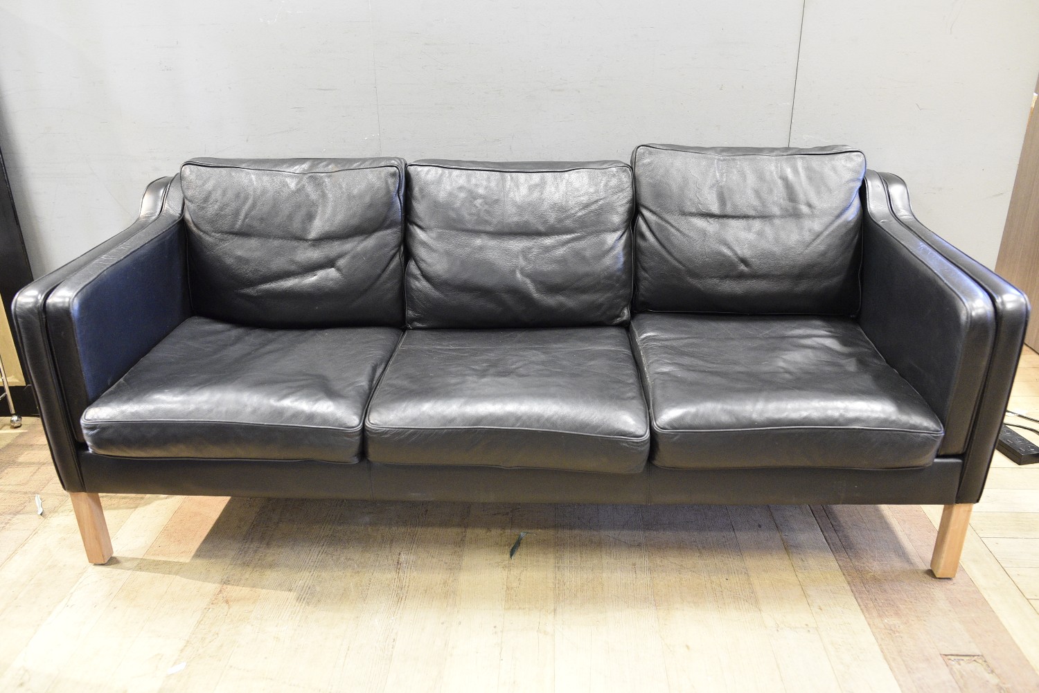 A DANISH THREE SEATER LEATHER SOFA (85H X 199W X 80D CM) (PLEASE NOTE THIS HEAVY ITEM MUST BE REMOVED BY CARRIERS AT THE CUSTOMER'S EXPENSE. LEONARD JOEL STAFF CANNOT ASSIST CARRYING THIS ITEM) (X-LARGE ITEM)