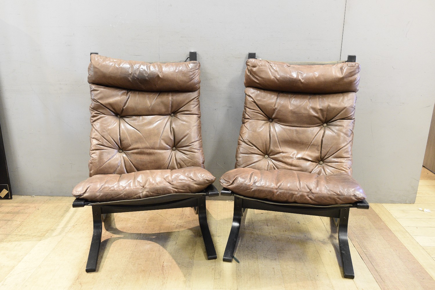 A PAIR OF SIGURD RESELL SIESTA CHAIRS (A/F) (100H X 66W X 80D CM) (LEONARD JOEL DELIVERY SIZE: X-LARGE)
