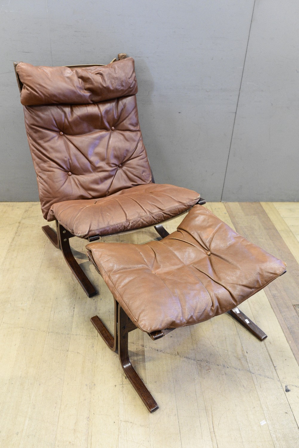 A SIGURD RESELL SIESTA CHAIR WITH FOOTSTOOL (A/F) (101H X 66W X 82D CM) (LEONARD JOEL DELIVERY SIZE: X-LARGE)