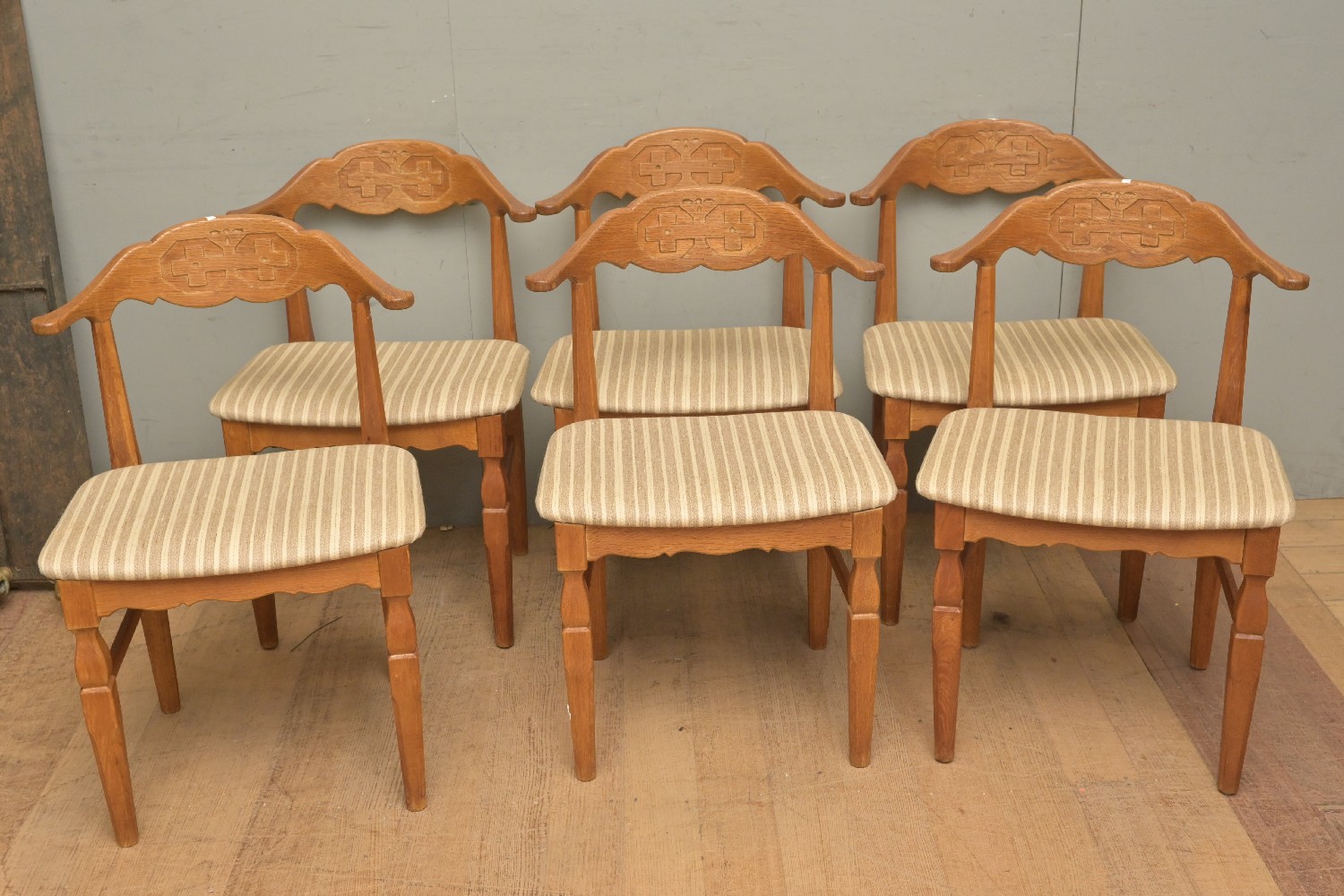 A SET OF SIX RESTORED 1950S DINING CHAIRS BY HENNING KJÆRNULF (77H X 51W X 47D CM) (LEONARD JOEL DELIVERY SIZE: X-LARGE)