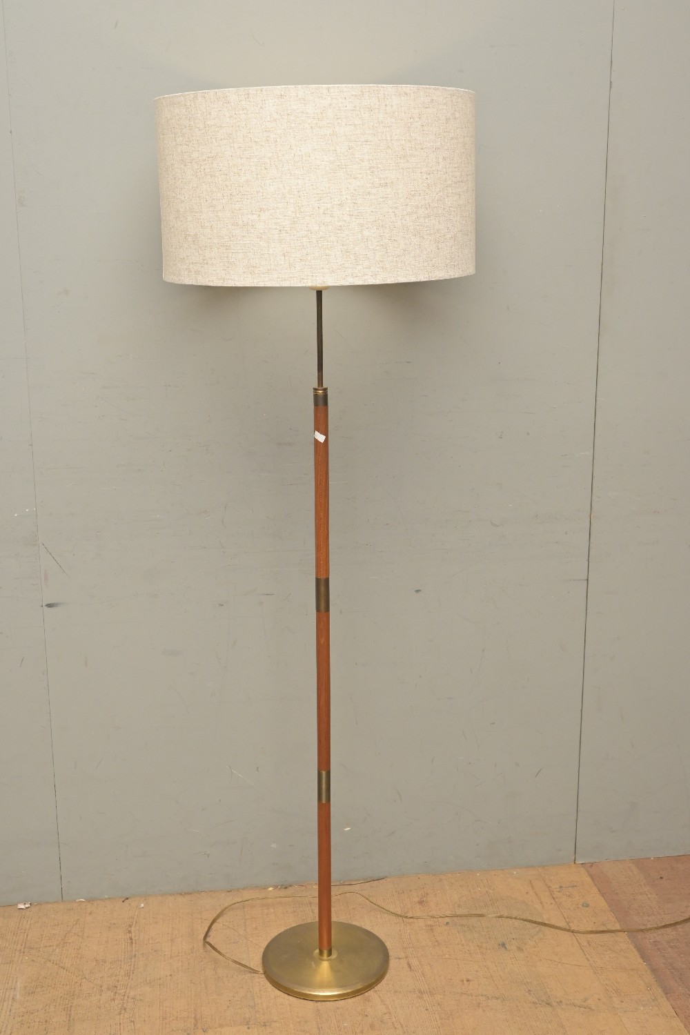 A DANISH TEAK AND BRASS FLOOR LAMP, EUROPEAN PLUG, (157H X 52D CM) (LEONARD JOEL DELIVERY SIZE: X-LARGE)