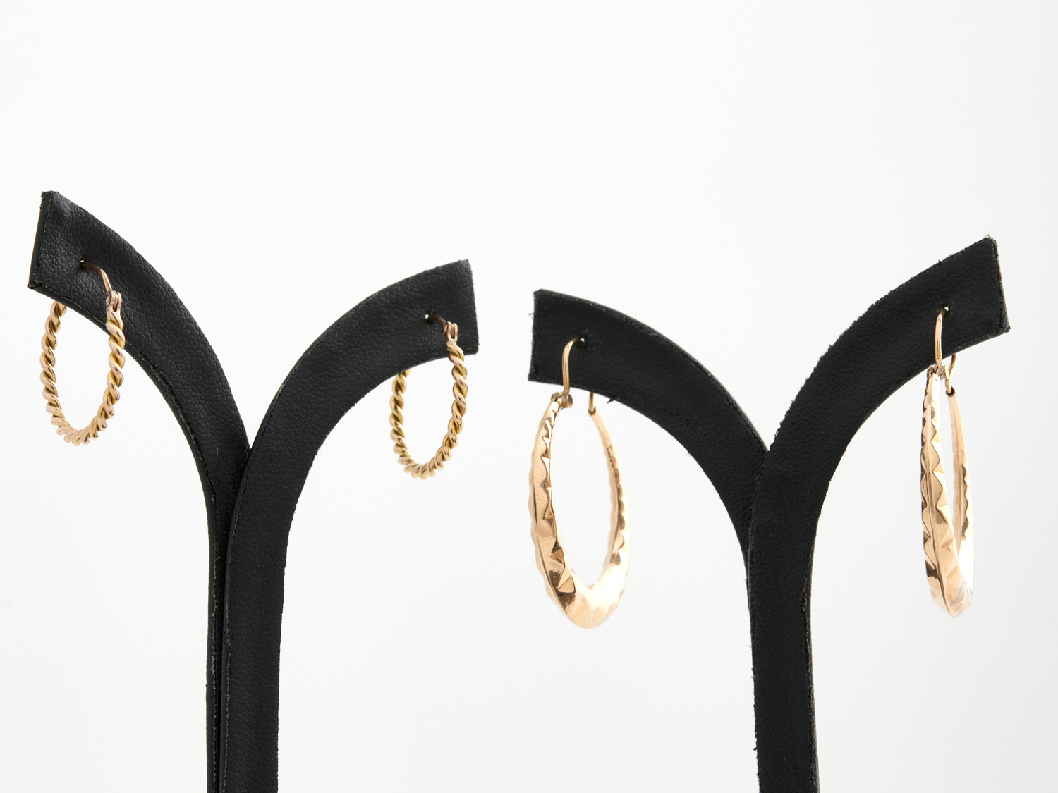 TWO PAIRS OF HOOP EARRINGS IN 14CT GOLD, TO LEVER BACK FITTINGS, 6.1GMS