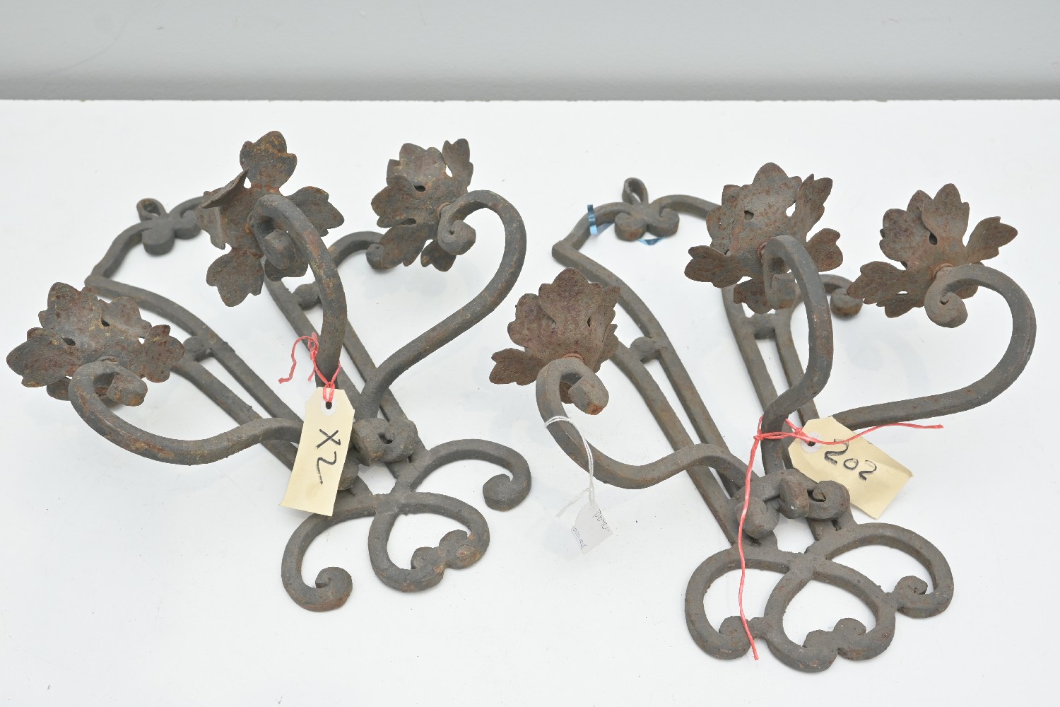 A PAIR OF CAST IRON WALL SCONCES (A/F) (47H X 31W CM) (LEONARD JOEL DELIVERY SIZE: MEDIUM)