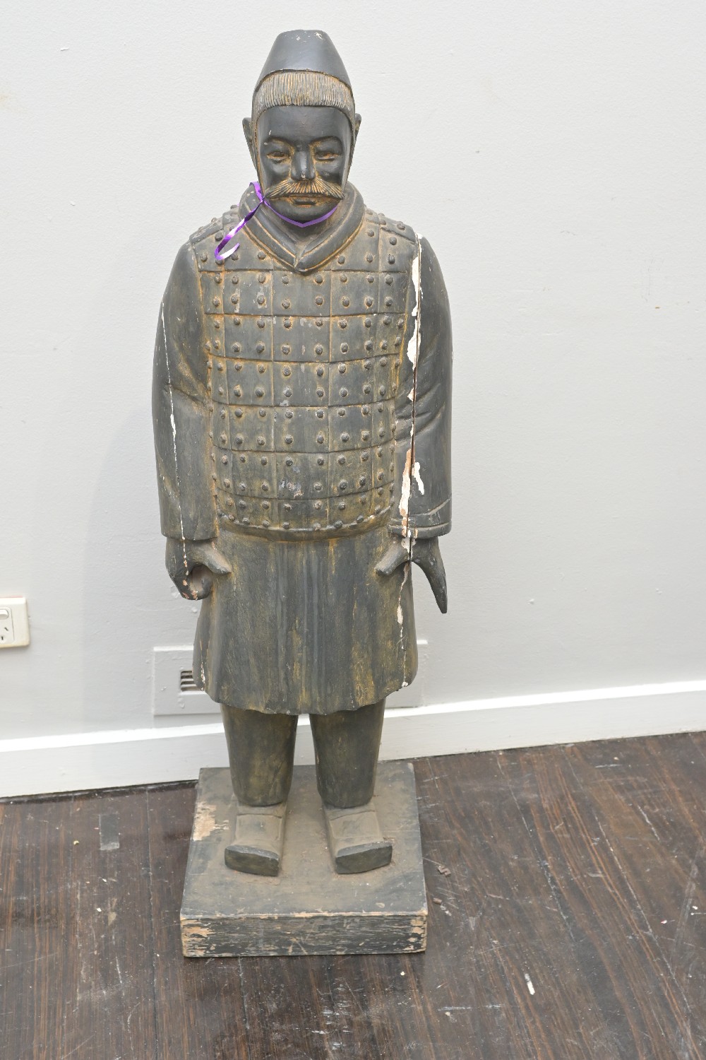 A CHINESE WARRIOR FIGURE (A/F) (113H X 30W X 30D CM) (PLEASE NOTE THIS HEAVY ITEM MUST BE REMOVED BY CARRIERS AT THE CUSTOMER'S EXPENSE. LEONARD JOEL STAFF CANNOT ASSIST CARRYING THIS ITEM) (X-LARGE ITEM)