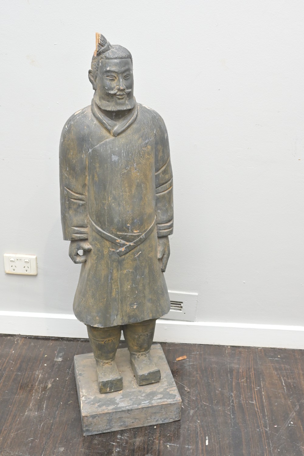 A CHINESE WARRIOR FIGURE (A/F) (113H X 30W X 30D CM) (PLEASE NOTE THIS HEAVY ITEM MUST BE REMOVED BY CARRIERS AT THE CUSTOMER'S EXPENSE. LEONARD JOEL STAFF CANNOT ASSIST CARRYING THIS ITEM) (X-LARGE ITEM)