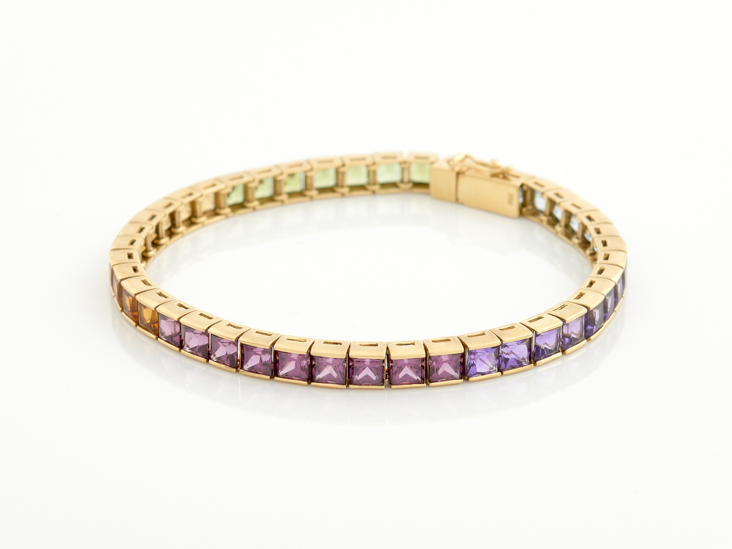 A GEM SET LINE BRACELET IN 18CT GOLD, LENGTH 185MM, 17.9GMS