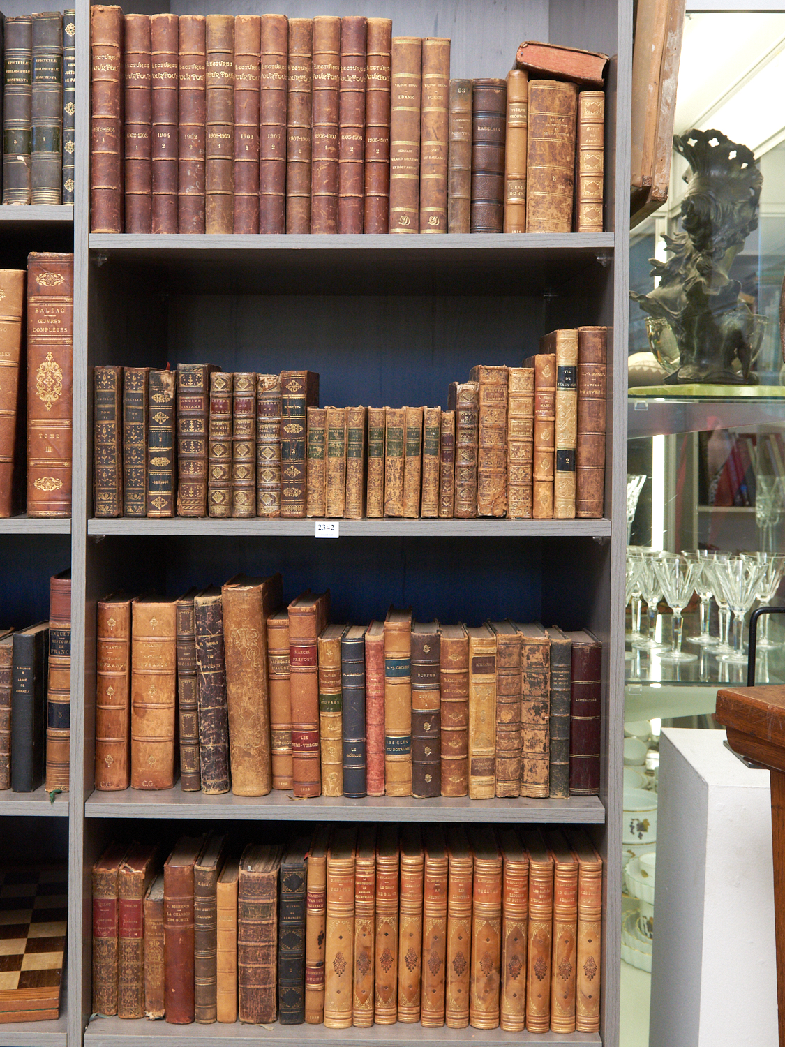 FOUR SHELVES OF FRENCH ANTIQUE BINDINGS INCLUDING VARIOUS VOLUMES OF LECTURES POURTOUS, LEONARD JOEL DELIVERY SIZE: X-LARGE