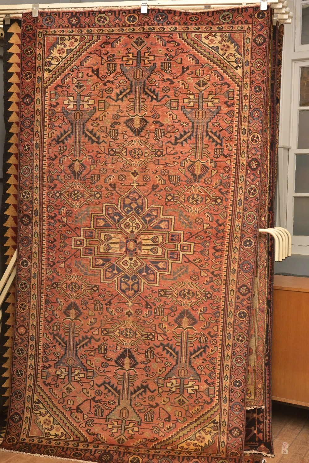 A TRIBAL CIRCA 1970'S PERSIAN HAMADAN EKBATANA RUG. 100% WOOL, NATURAL DYES, HAND-KNOTTED VINTAGE PILE. TRIBAL WEAVE WITH AND DESIGN OF CENTRAL MEDALLION IN A FIELD OF TRIBAL DESIGNS ON SOFT MELLOW COLOURS. CLEAN PILE. SIZE: 259 X 138 CM ORIGIN: PERSIA – RRP: $1,600 DOCUMENTATION OF AUTHENTICITY INCLUDED