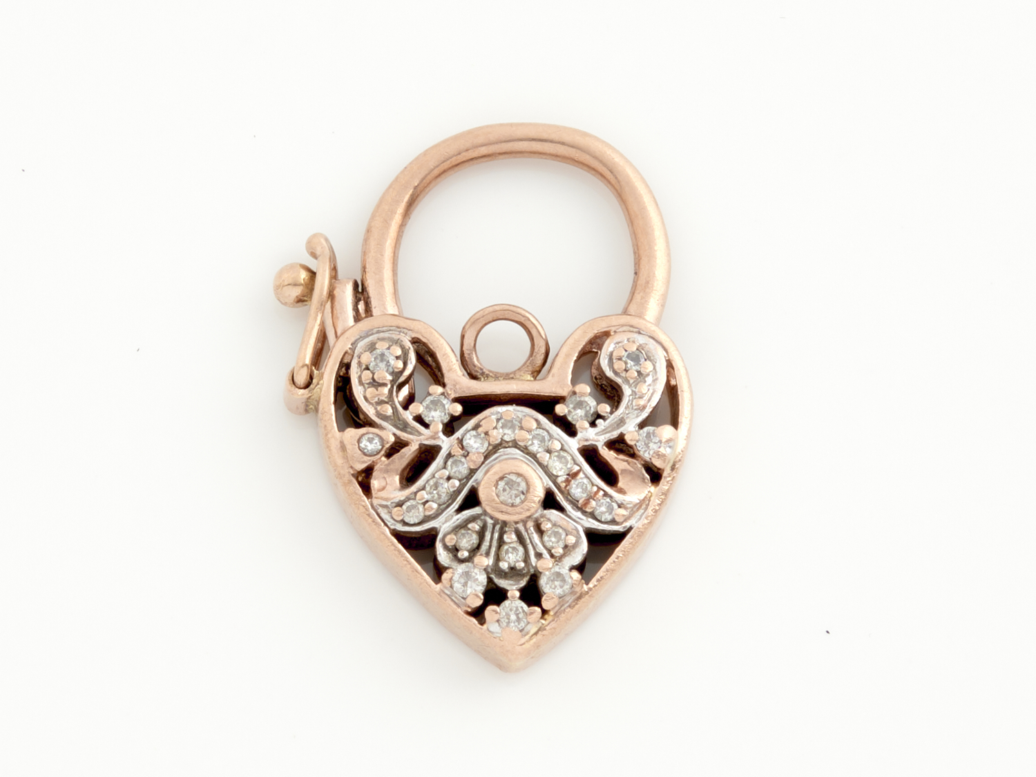 A DIAMOND SET HEART PADLOCK IN 9CT GOLD, 27 X 20MM, 5.2GMS