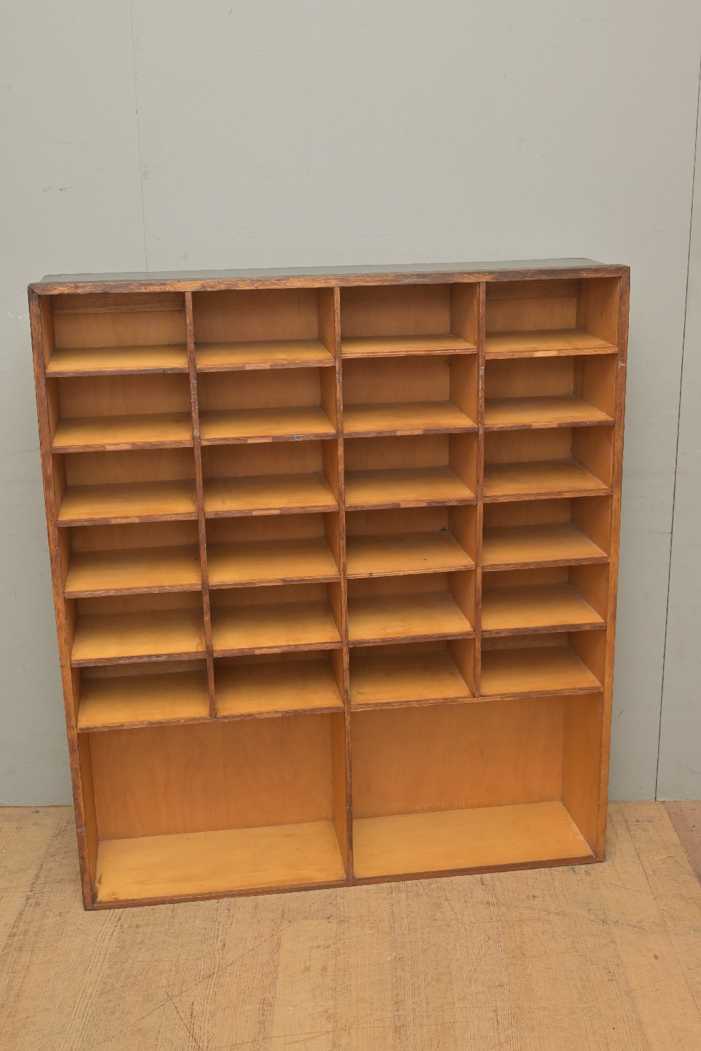 A RUSTIC PIDGEON HOLE UNIT (A/F) (124H X 109W X 26D CM) (LEONARD JOEL DELIVERY SIZE: X-LARGE)