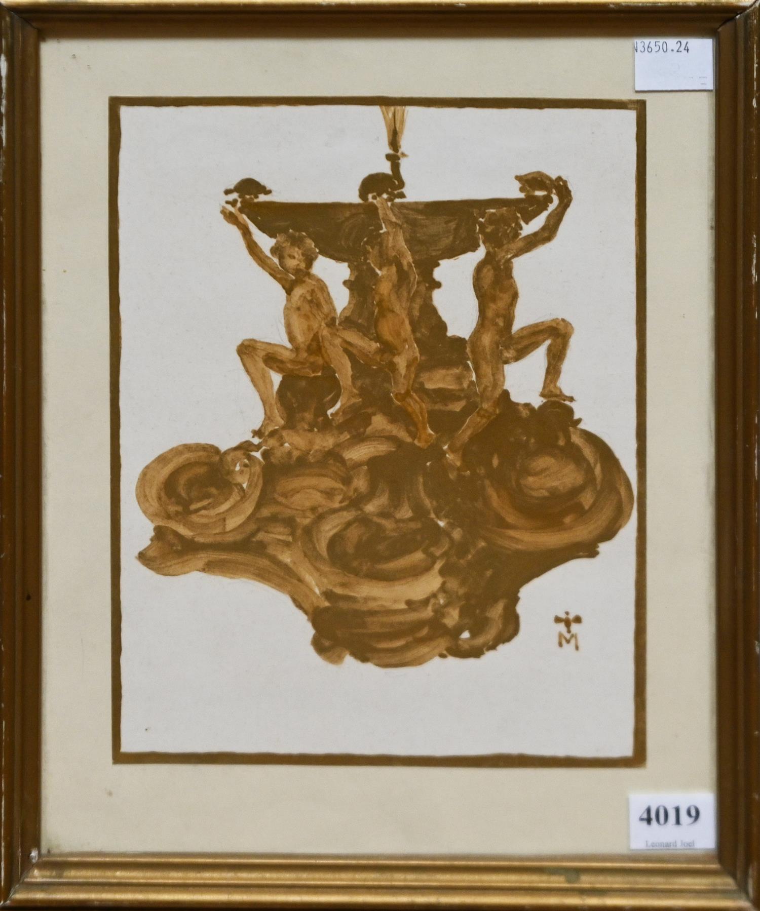 MARTIN BOYD, (FOUNTAIN), WATERCOLOUR AND LUSTRE ON PAPER, INITIALLED LOWER RIGHT, 21 X 16CM, FRAME SIZE: 28.5 X 22.5CM