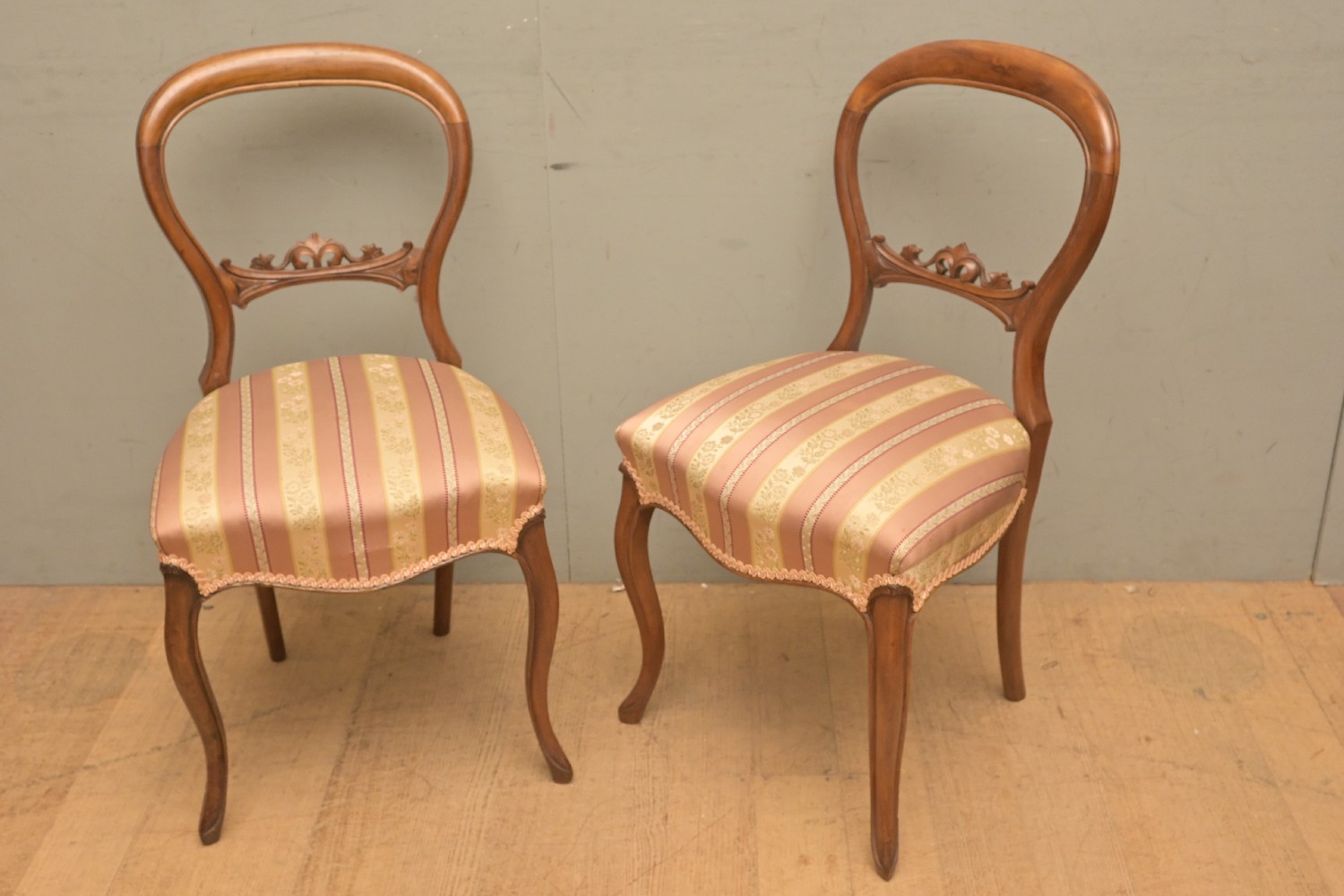 A PAIR OF VICTORIAN WALNUT AND UPHOLSTERED SIDE CHAIRS (A/F) (84H X 43W X 50D CM) (LEONARD JOEL DELIVERY SIZE: LARGE)