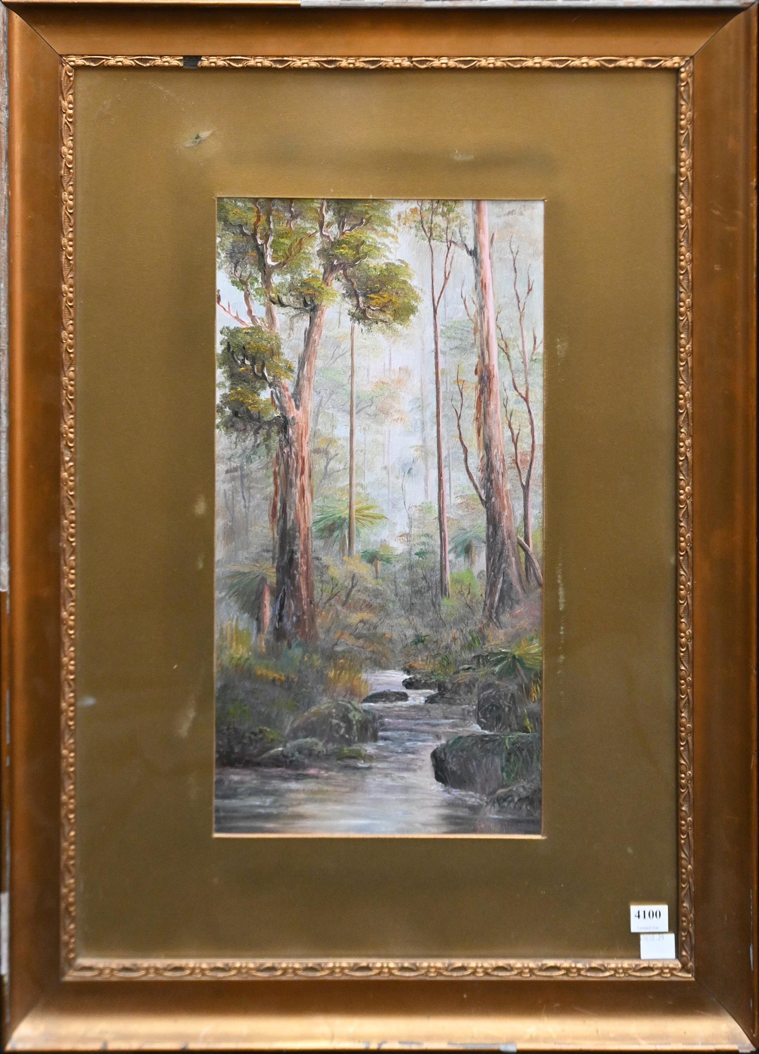 SIGNED INDECIPHERABLY, (LANDSCAPE) 1911, OIL ON BOARD, SIGNED AND DATED LOWER RIGHT, 42.5 X 22CM, FRAME SIZE: 70 X 51CM