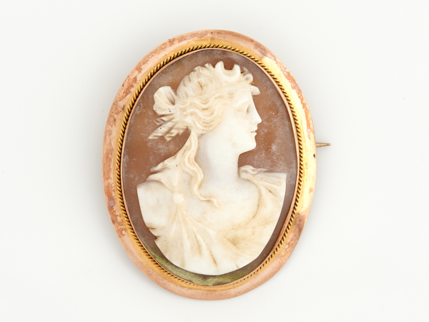 A CAMEO BROOCH STAMPED 9CT GOLD, 50 X 39MM, 10.1GMS