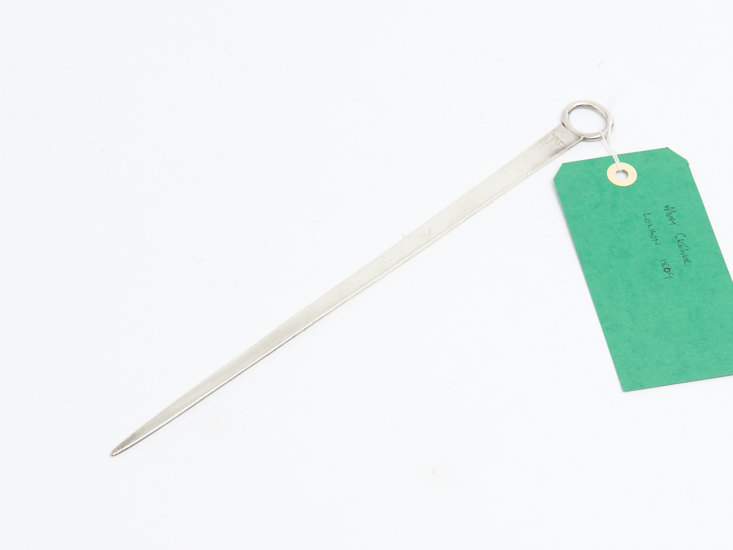 A STERLING SILVER MEAT SKEWER, LONDON 1809 76G L.30CM, LEONARD JOEL DELIVERY SIZE: SMALL