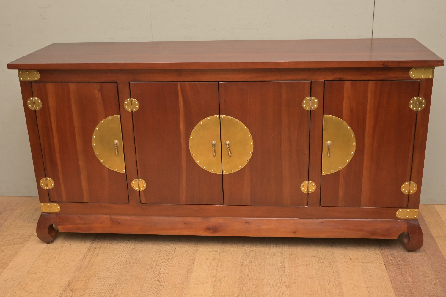 A CHINESE HARDWOOD SIDEBOARD WITH BRASS MOUNTS (90H X 182W X 52D CM) (PLEASE NOTE THIS HEAVY ITEM MUST BE REMOVED BY CARRIERS AT THE CUSTOMER'S EXPENSE. LEONARD JOEL STAFF CANNOT ASSIST CARRYING THIS ITEM) (X-LARGE ITEM)