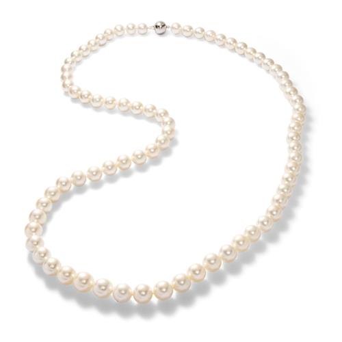 Composed of 76 cultured pearls, graduating from approximately 10mm to 13mm, completed by a diamond set 14ct white gold ball clasp, the diamonds together weighing approximately 0.09 carats, inner circumference 910mm.