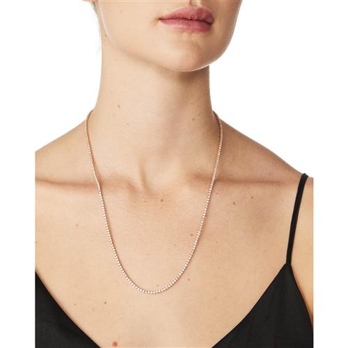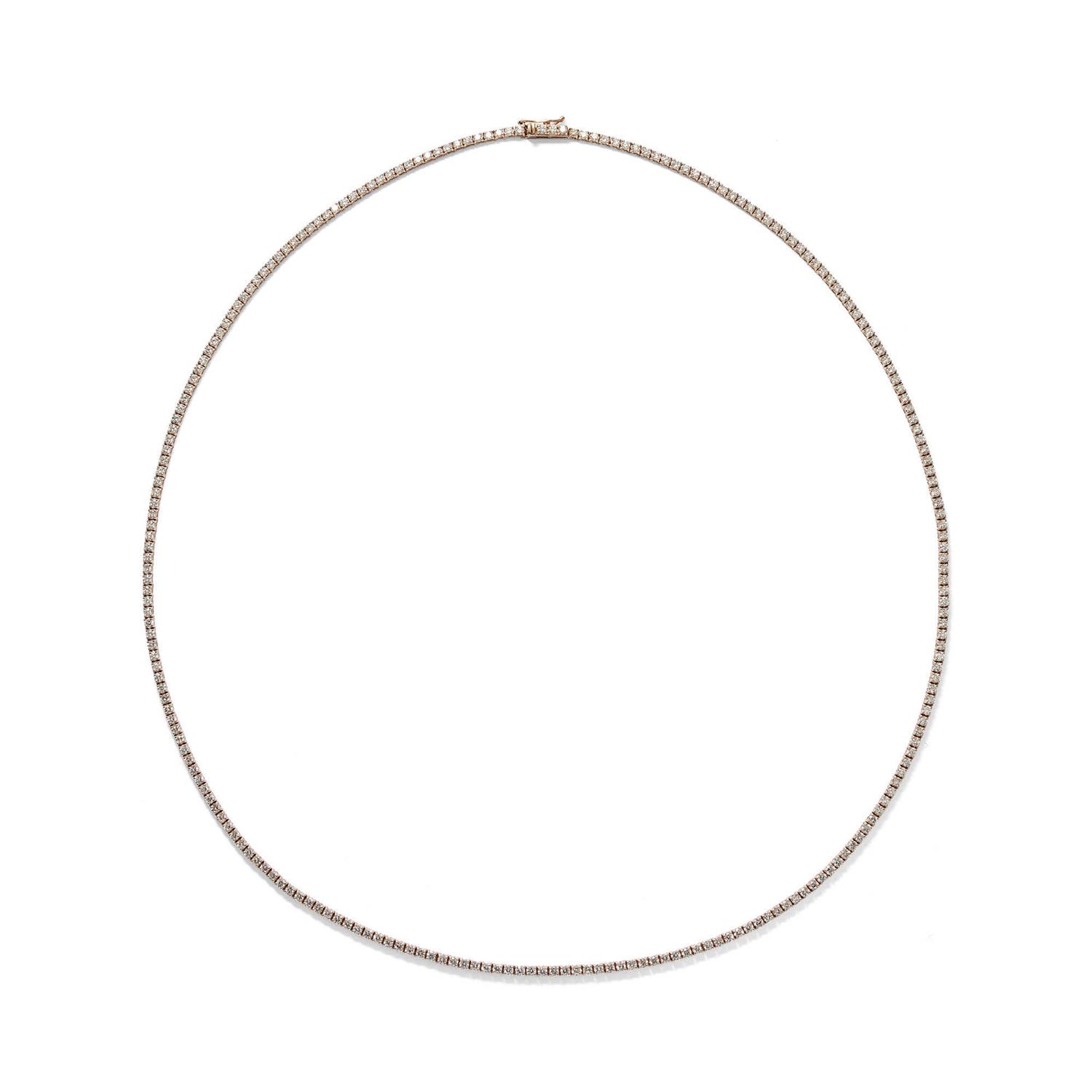 Composed of a uniform line of 234 claw-set brilliant-cut diamonds completed by a concealed box clasp, the diamonds together weighing approximately 7.15 carats, mounted in 14ct pink gold, length 565mm.
