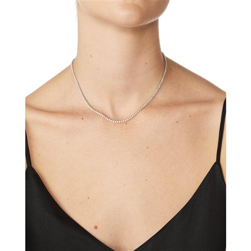 Composed of a uniform line of 158 claw-set brilliant-cut diamonds completed by a concealed box clasp, the diamonds together weighing approximately 7.02 carats, mounted in 14ct white gold, length 410mm.