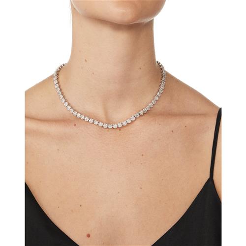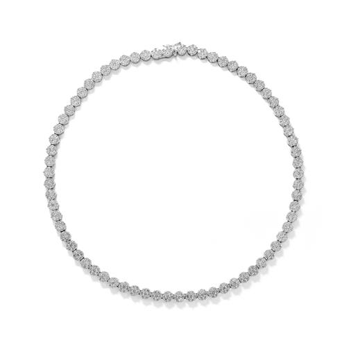 Composed of a line of claw-set brilliant-cut diamond clusters, completed by a concealed box clasp, the diamonds together weighing approximately 12.50 carats, mounted in 14ct white gold, inner circumference 420mm.