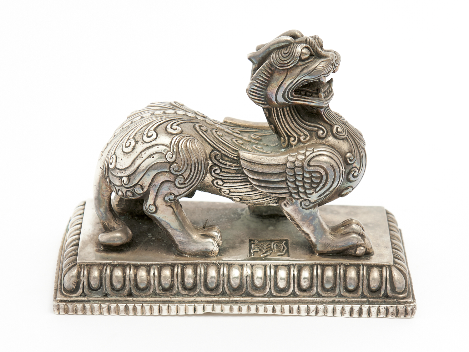 A CHINESE METAL FOO DOG FIGURE L.15CM, LEONARD JOEL DELIVERY SIZE: SMALL
