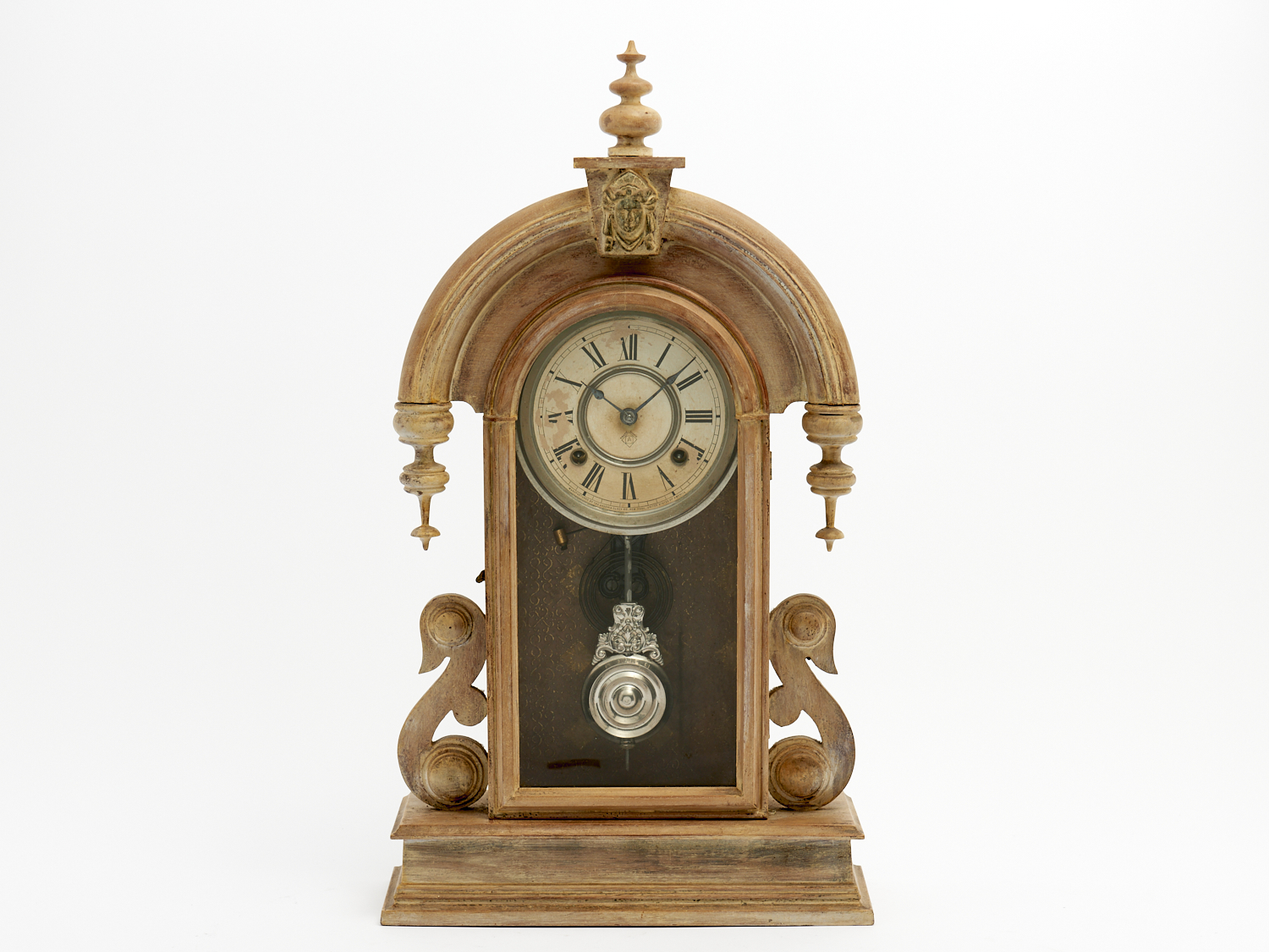 AN ANTIQUE ANSONIA MANTEL CLOCK IN LIMED CASE H.60CM, LEONARD JOEL DELIVERY SIZE: LARGE