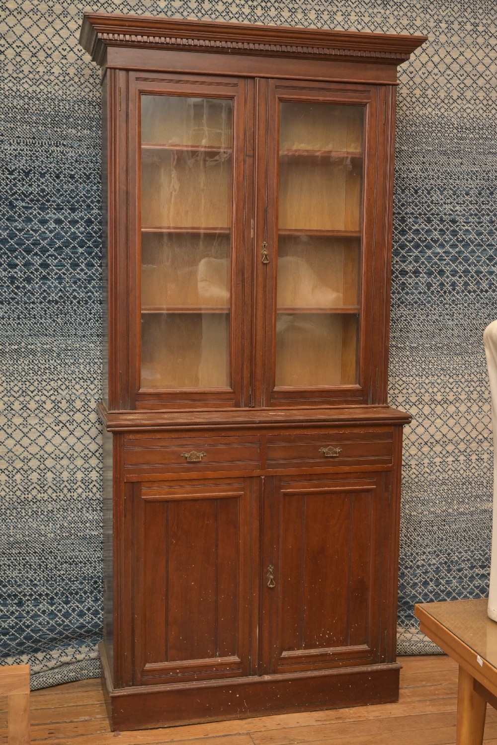 A LATE VICTORIAN WALNUT BOOK-CASE CABINET (A/F) (238H X 120W X 50D CM) (PLEASE NOTE THIS HEAVY ITEM MUST BE REMOVED BY CARRIERS AT THE CUSTOMER'S EXPENSE. LEONARD JOEL STAFF CANNOT ASSIST CARRYING THIS ITEM) (X-LARGE ITEM)