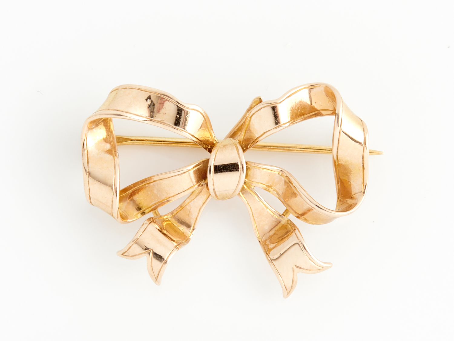 A BOW BROOCH IN 14CT GOLD, APPROXIMATELY 31 X 23MM, 4.0GMS