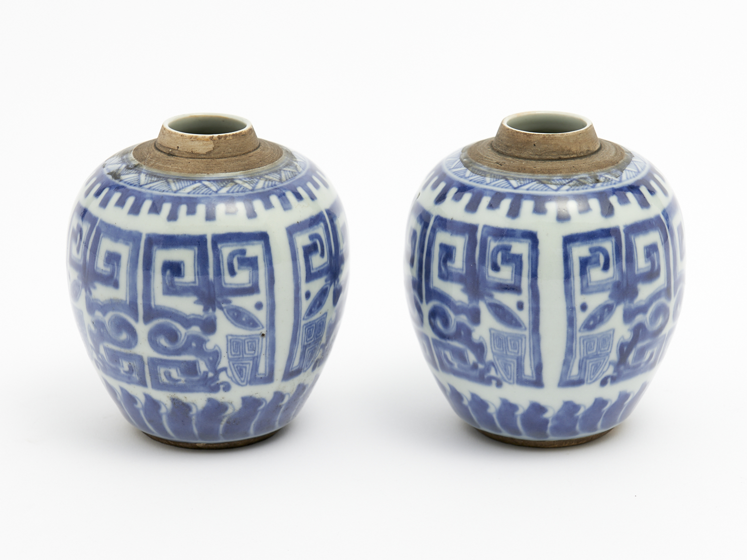 A PAIR OF CHINESE BLUE AND WHITE GINGER JARS H.13CM, LEONARD JOEL DELIVERY SIZE: SMALL