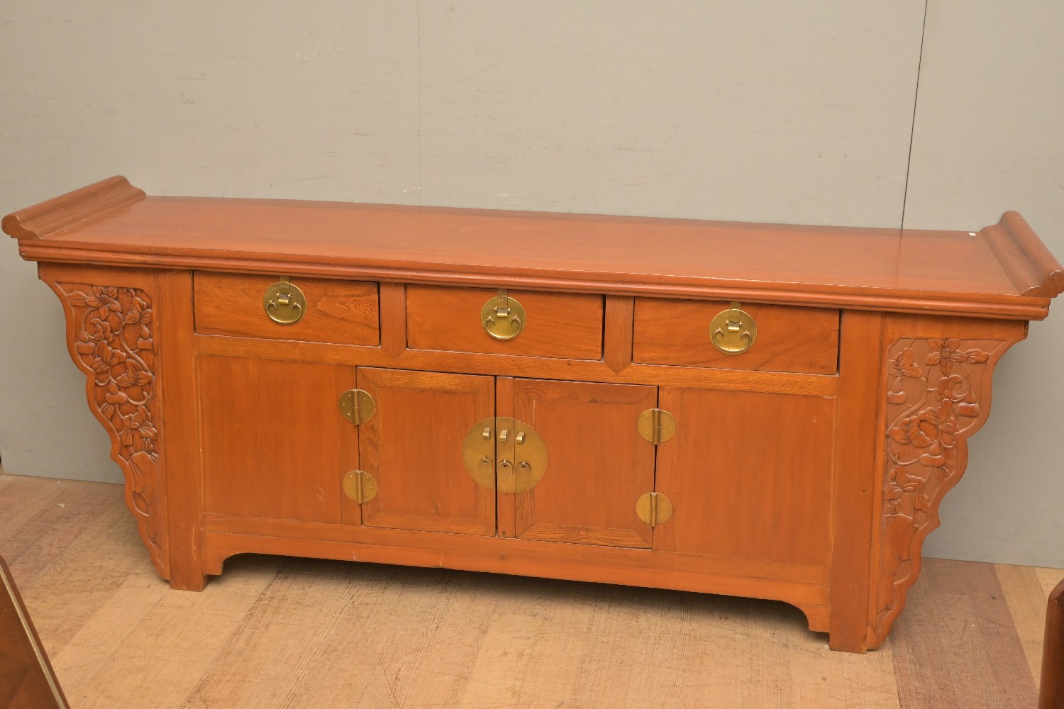 A CHINESE CONSOLE TABLE WITH DRAWERS (A/F) (86H X 213W X 49D CM) (PLEASE NOTE THIS HEAVY ITEM MUST BE REMOVED BY CARRIERS AT THE CUSTOMER'S EXPENSE. LEONARD JOEL STAFF CANNOT ASSIST CARRYING THIS ITEM) (X-LARGE ITEM)