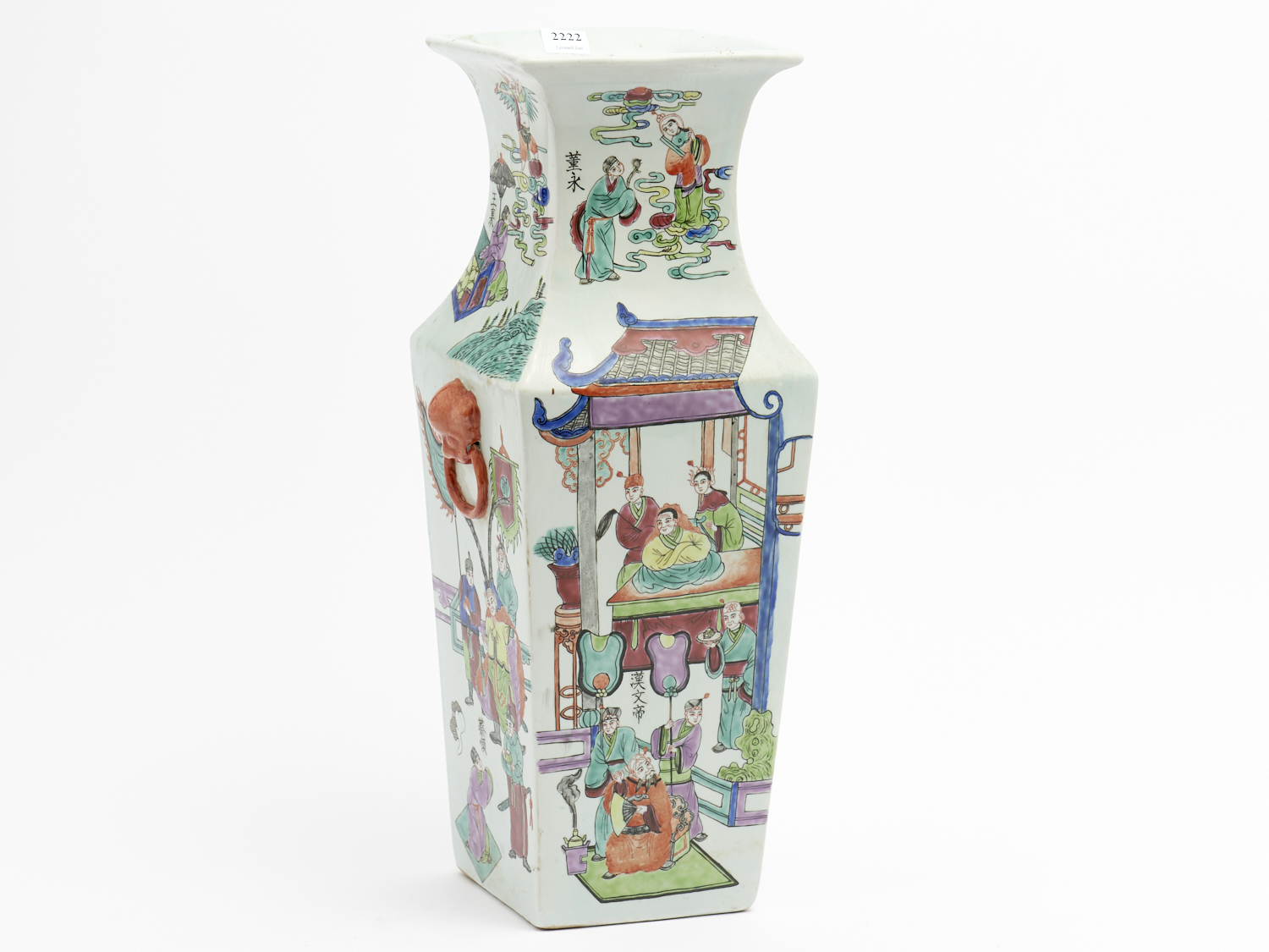 A CHINESE REPUBLIC FAMILLE VERT FOUR SIDED VASE WITH LION HEAD HANDLES H.45.5CM, LEONARD JOEL DELIVERY SIZE: LARGE