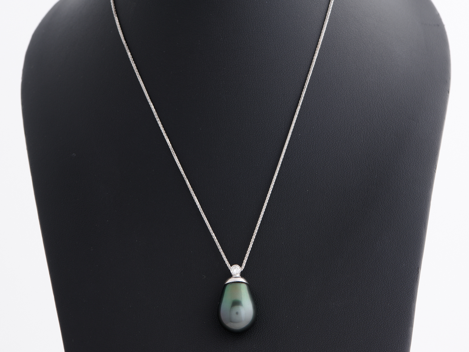 A TAHITIAN PEARL AND DIAMOND PENDANT IN 18CT WHITE GOLD TO A CHAIN IN 18CT WHITE GOLD, 400MM, THE PEARL MEASURING 19 X 14.6MM, 9.9GMS