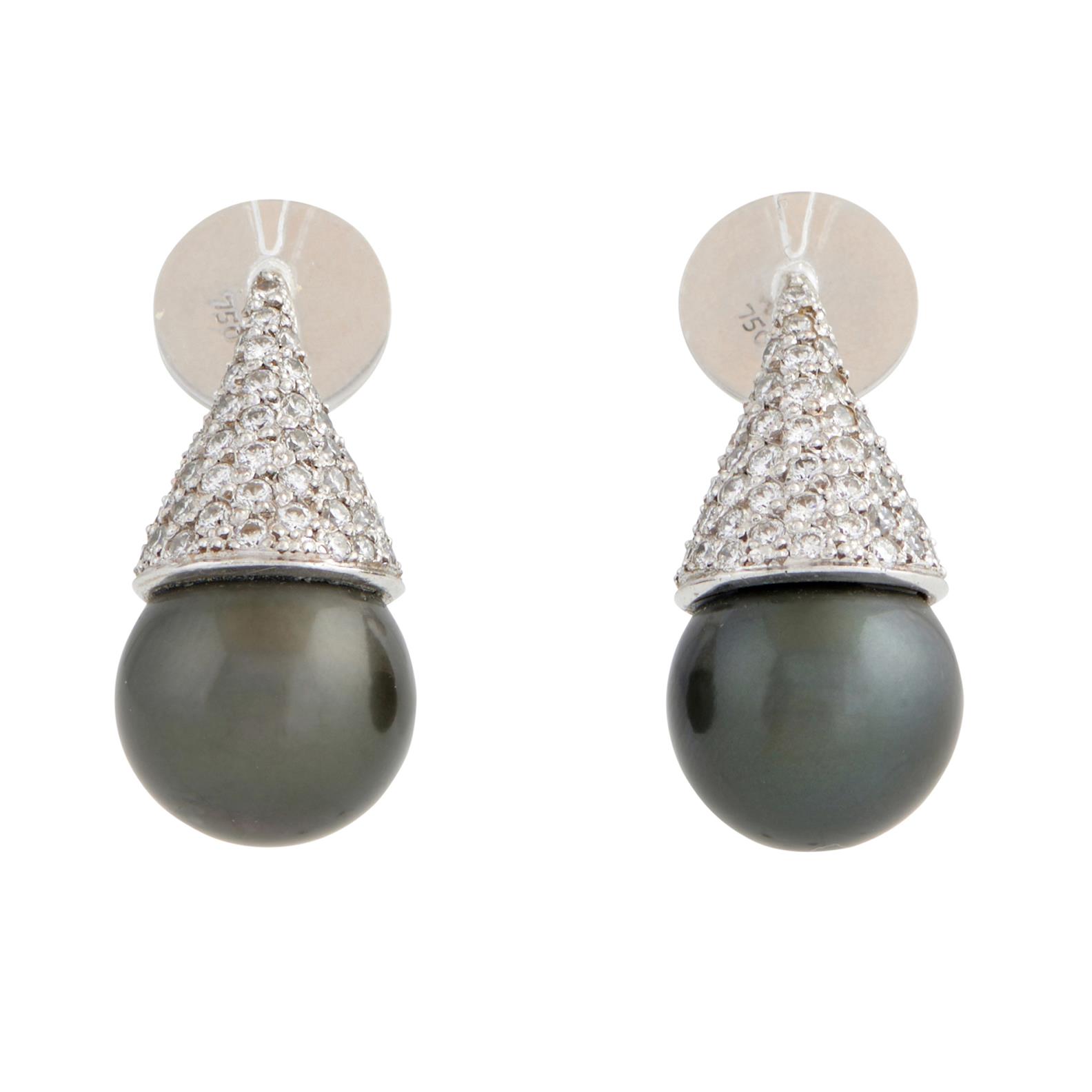 PAIR OF 18CT WHITE GOLD, TAHITIAN PEARL AND DIAMOND EARRINGS