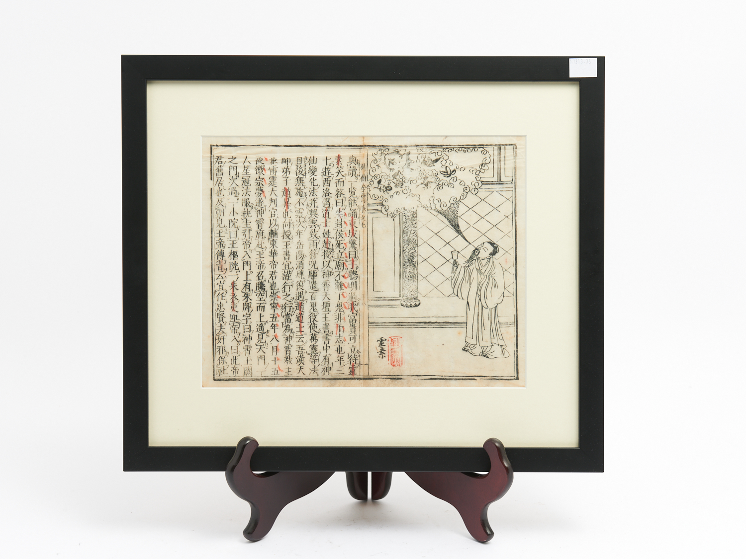 A FRAMED CHINESE CALIGRAPHY 35 X 41CM, LEONARD JOEL DELIVERY SIZE: SMALL