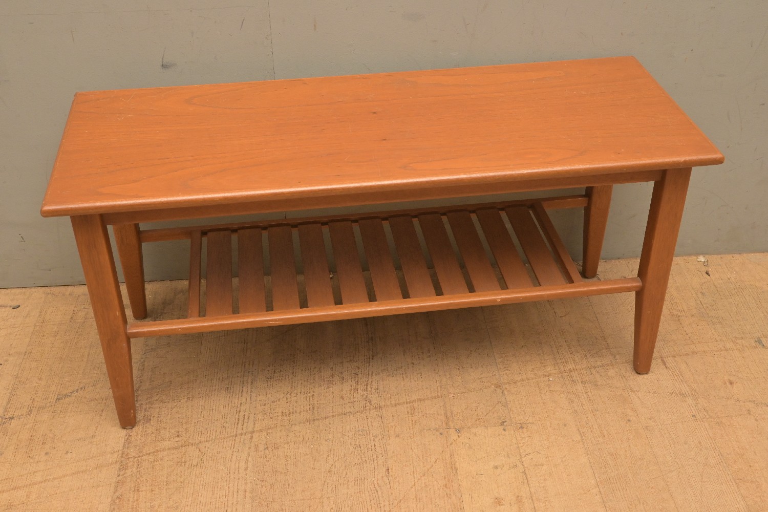 A MID-CENTURY TEAK TWO TIER COFFEE TABLE (46H X 98W X 38D CM) (LEONARD JOEL DELIVERY SIZE: LARGE)