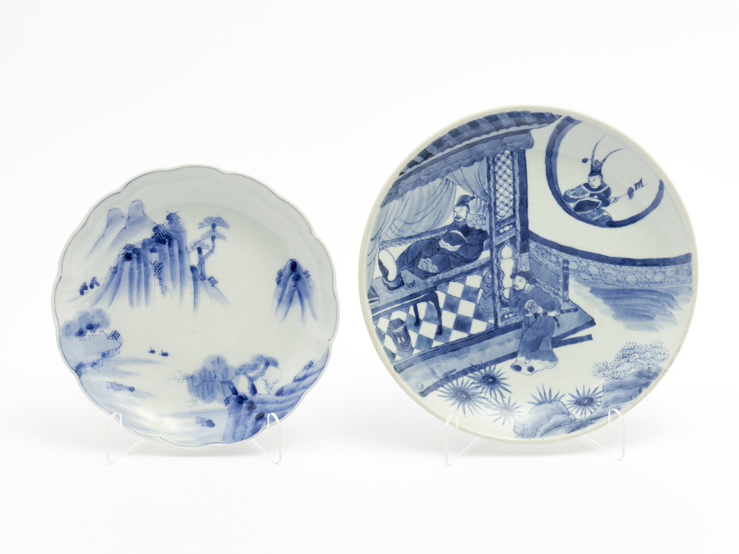 TWO CHINESE BLUE AND WHITE DECORATED DISHES DIA.26CM (LARGEST), LEONARD JOEL DELIVERY SIZE: MEDIUM
