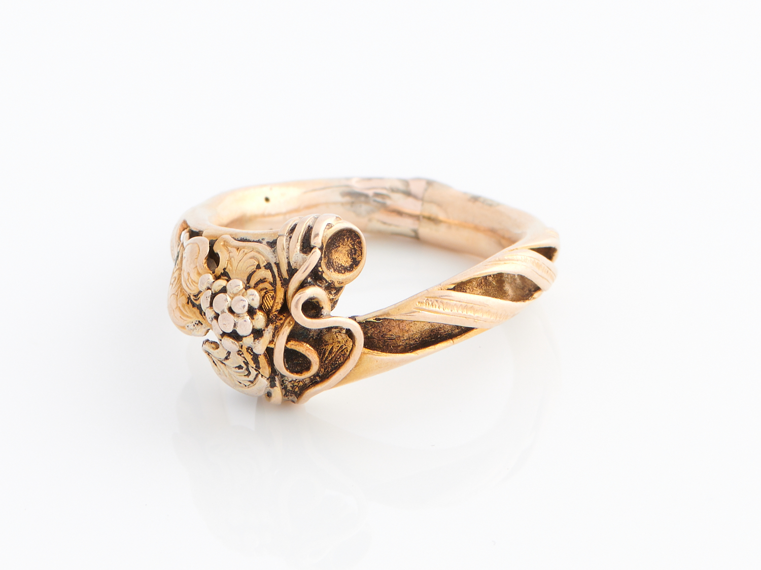 A VINE LEAF RING IN 9CT GOLD, SIZE M/N, 4GMS