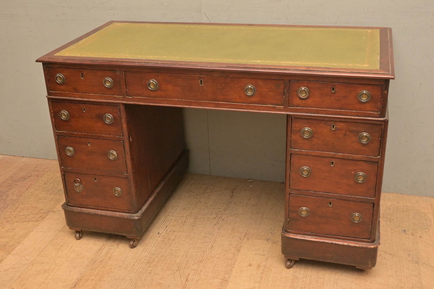 A VICTORIAN MAHOGANY PEDESTAL DESK, WITH LEATHER-LINED TOP (A/F) (75H X 116W X 59D CM) (PLEASE NOTE THIS HEAVY ITEM MUST BE REMOVED BY CARRIERS AT THE CUSTOMER'S EXPENSE. LEONARD JOEL STAFF CANNOT ASSIST CARRYING THIS ITEM) (X-LARGE ITEM)