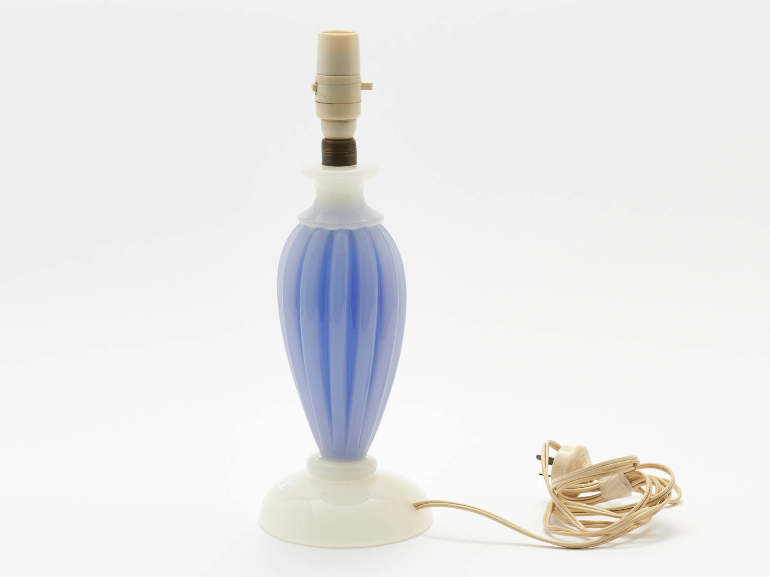 A 1950'S MURANO ARCHIMEDE SEGUSO BLUE AND WHITE OPAQUE MURANO GLASS LAMP BASE WITH ORIGINAL SILVER FOIL STICKER TO UNDERSIDE H.40CM, LEONARD JOEL LOCAL DELIVERY: MEDIUM
