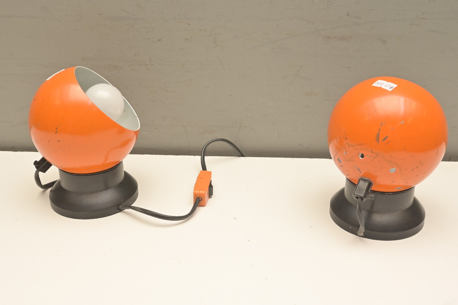 A PAIR OF POP ORANGE TABLE LAMPS OR WALL SCONCES (A/F) - EUROPEAN PLUG (17H CM) (LEONARD JOEL DELIVERY SIZE: MEDIUM)