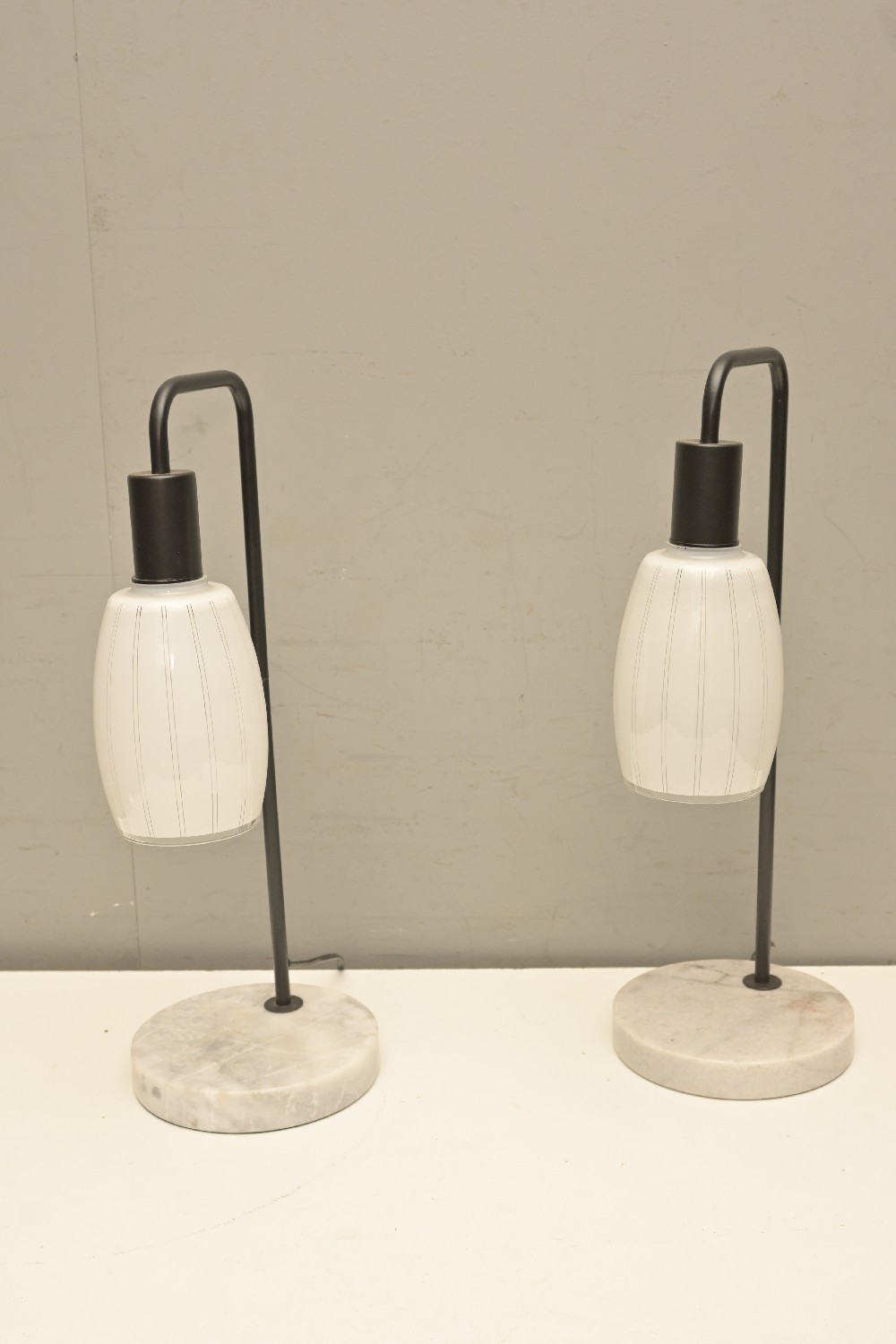 A PAIR OF MID-CENTURY GLASS TABLE LAMPS ON FAUX MARBLE BASES (52H CM) (LEONARD JOEL DELIVERY SIZE: LARGE)