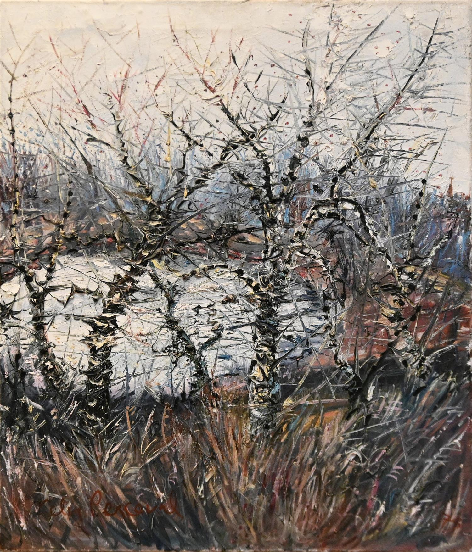 Overall good and stable condition. Light surface dirt/dust as with aging. The canvas is stretched but with no additional frame.
