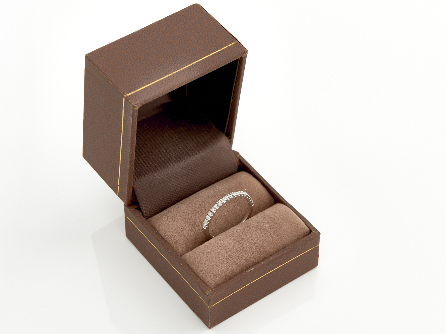 JAN LOGAN, A DIAMOND BAND IN STAMPED 18CT WHITE GOLD, SIZE M 1/2, 2.0GMS, ACCOMPANIED BY A BOX