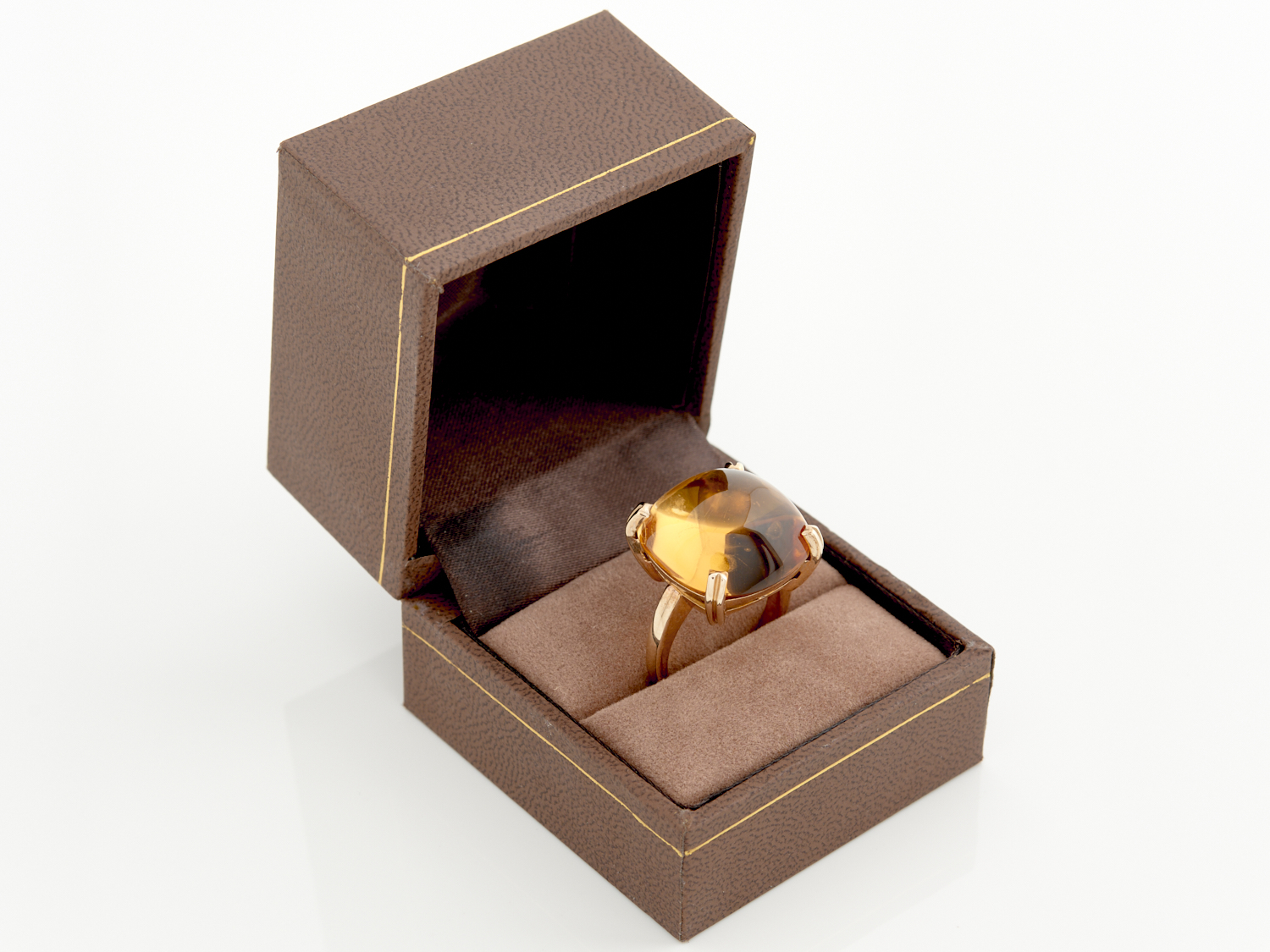 JAN LOGAN, A CITRINE RING STAMPED 9CT GOLD, SIZE M, 9.7GMS, BOXED