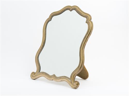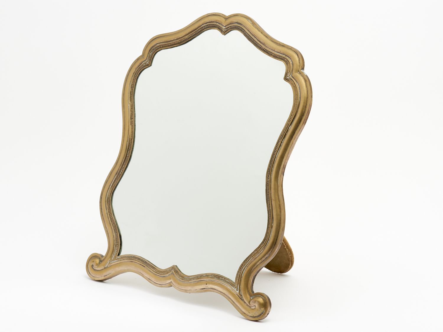 A LARGE TABLETOP MIRROR WITH HAMMERED METAL FRAME AND VELVET BACKING H.50CM, LEONARD JOEL DELIVERY SIZE: LARGE